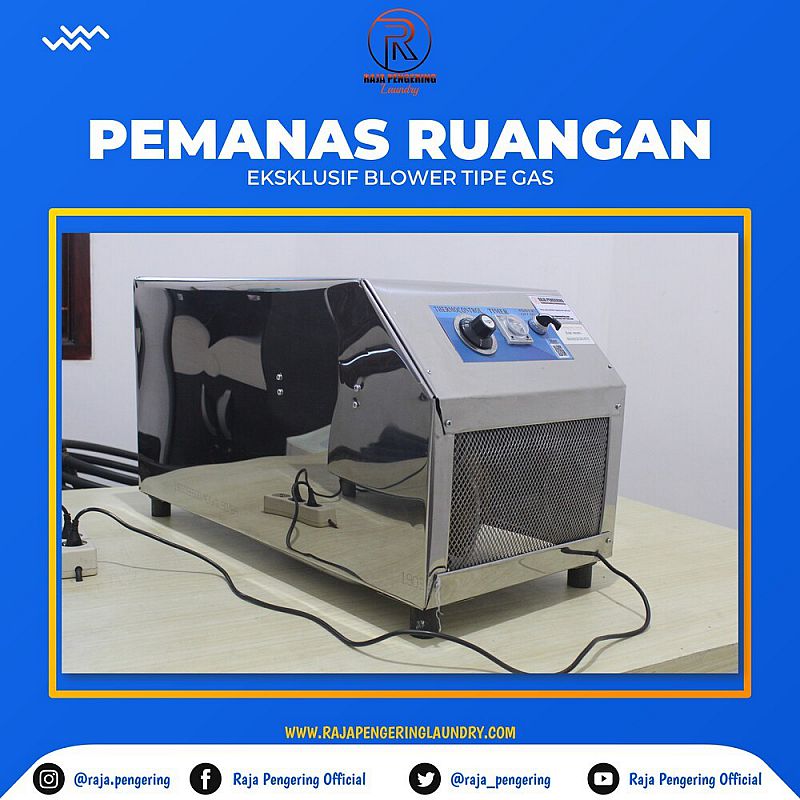 Didukung dengan daya listrik yang hanya 50 watt, dan konsumsi Gas LPG yang sangat hemat, membuat pengering ini sangat di minati para pelaku bisnis Laundry.